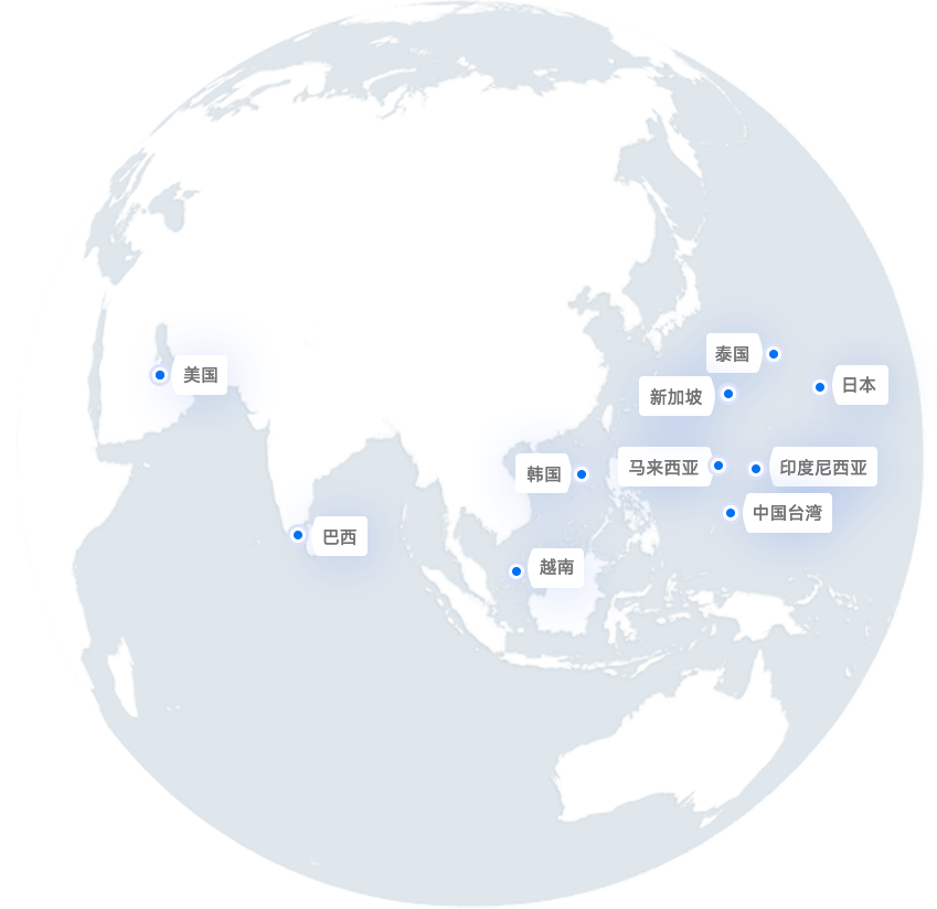 美國(guó)、巴西、韓國(guó)、日本、泰國(guó)、越南、新加坡、馬來(lái)西亞、印度尼西亞、中國(guó)臺(tái)灣等地區(qū)